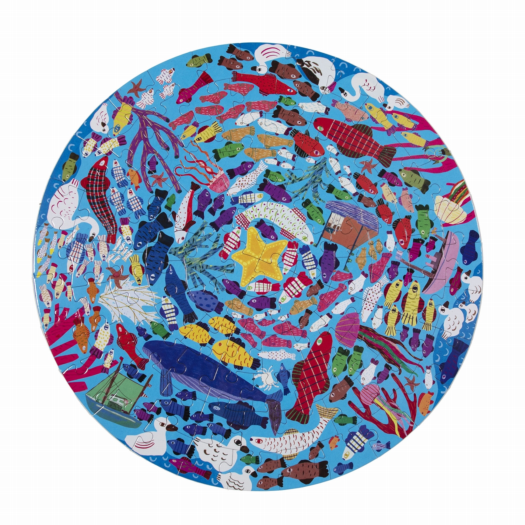 Les puzzles Eeboo sont faits à 90% de carton recyclé et imprimés avec des encres végétales pour un impact environnemental limité. Puzzle rond de 100 pièces, à partir de 5 ans, joyeusement illustré ! PUZZLE ROND Taille du puzzle : 50,8 cm de diamètre.