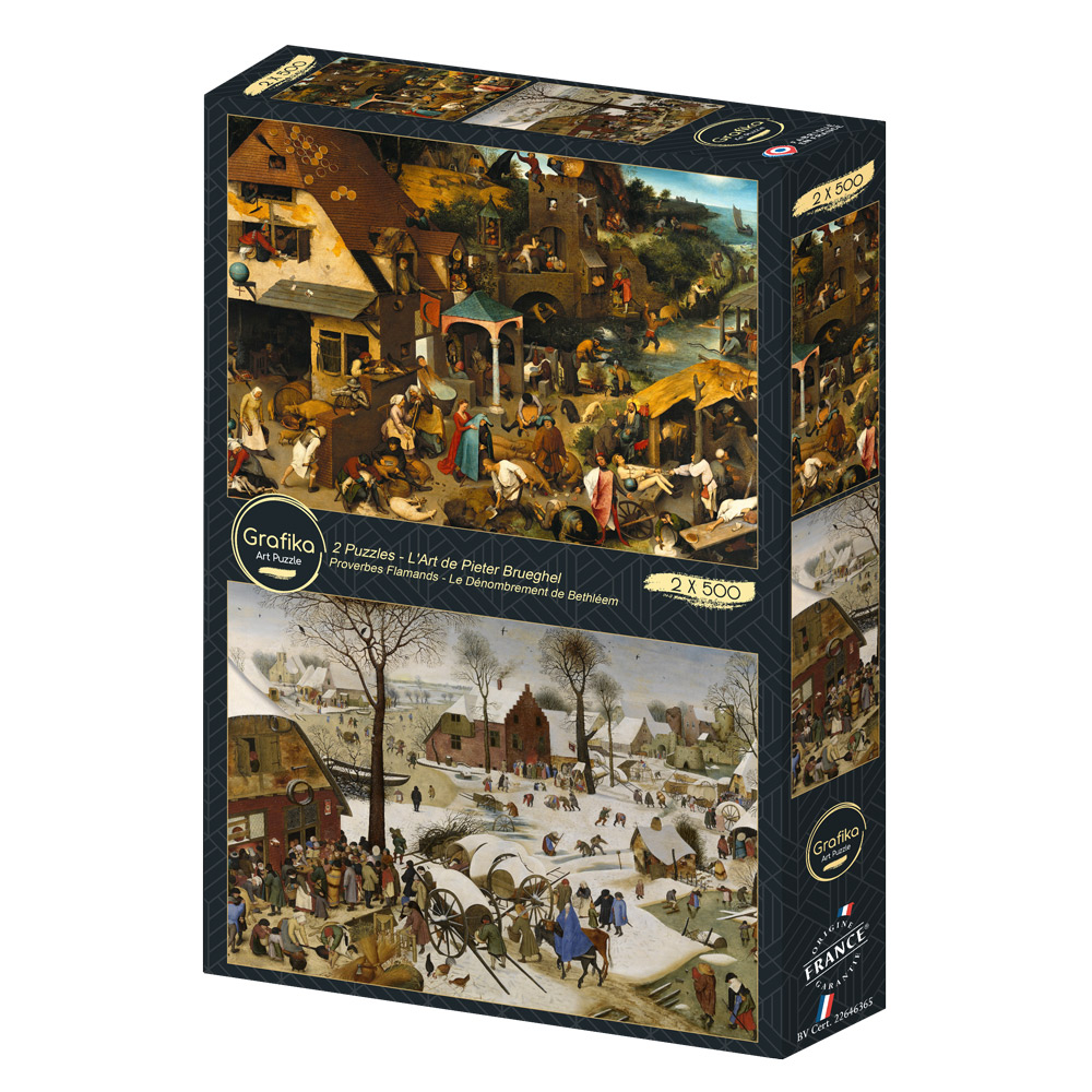 Accueil > Puzzles - Art > 2 Puzzles - L'Art de Pieter Brueghel : Proverbes Flamands - Le Dénombrement de Bethléem