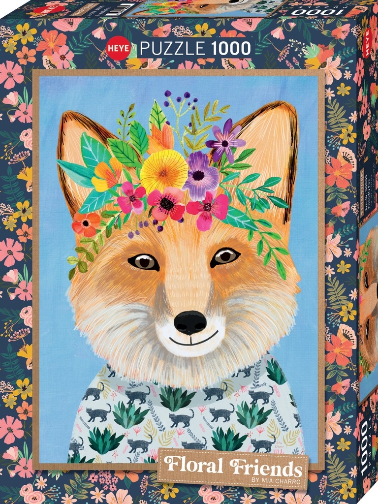 Puzzle 1000 pièces. Floral Friends de la marque HEYE, de la série Floral Friends et de l'artiste Mia Charro - Dimensions du puzzle monté : 50 cm x 70 cm - Label FSC (ce label environnemental a pour but d'assurer que la production de bois ou d'un produit à base de bois respecte les procédures garantissant la gestion durable des forêts)