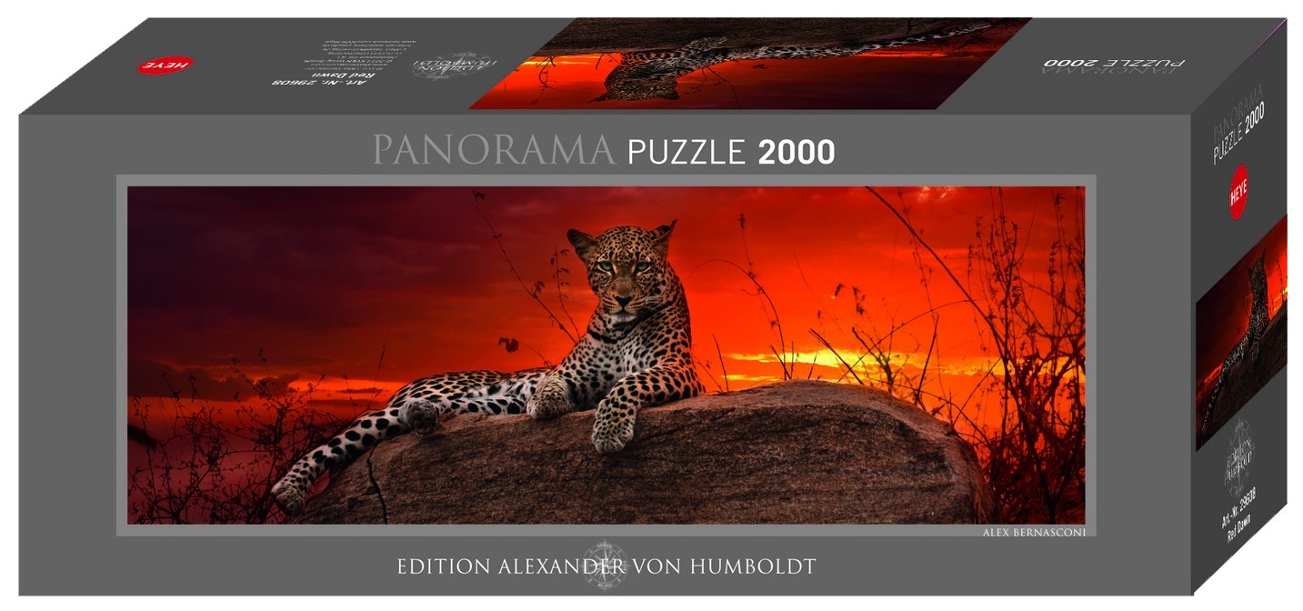 Puzzle 2000 pièces. panorama Red Dawn de la marque HEYE et la série Alexander Von Humboldt - Dimensions du puzzle monté : 136 x 48 cm - Label FSC (ce label environnemental a pour but d'assurer que la production de bois ou d'un produit à base de bois respecte les procédures garantissant la gestion durable des forêts)